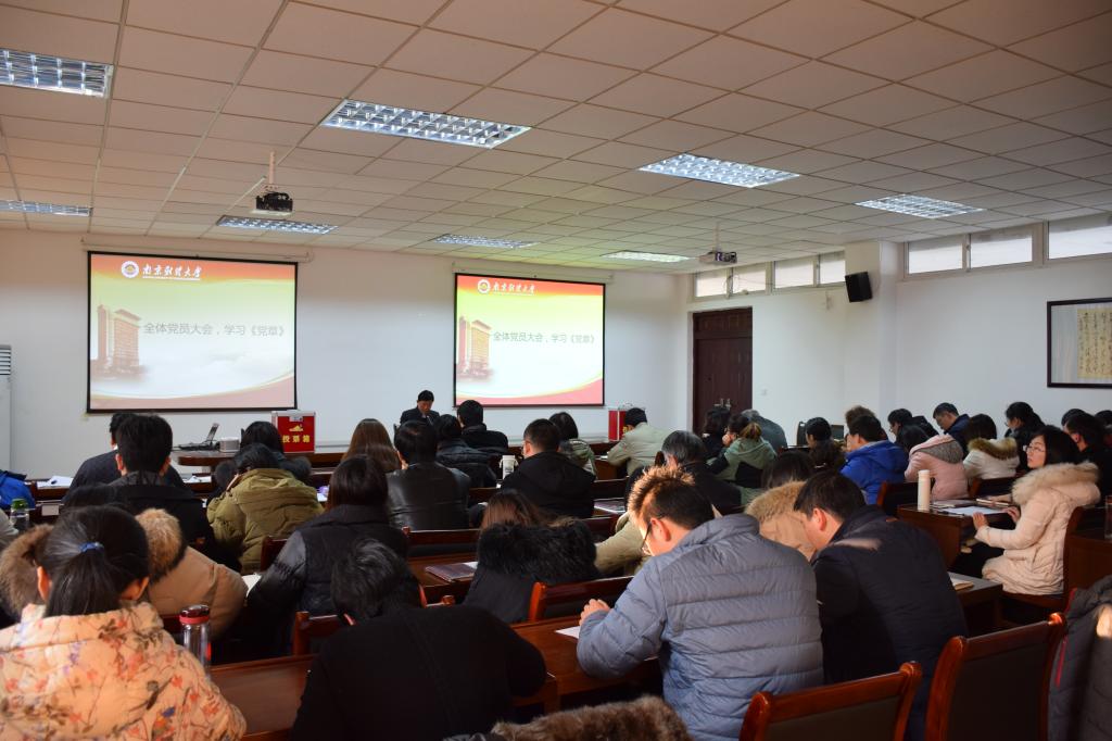 院在仙林校区德济楼408会议室召开党员大会,开展以“重温新党章,感知新力量”为主题的“两学一做”学习教育。全体党员院领导、支部书记及全体师生党员60多人参加大会。大会由乐玩网络游戏