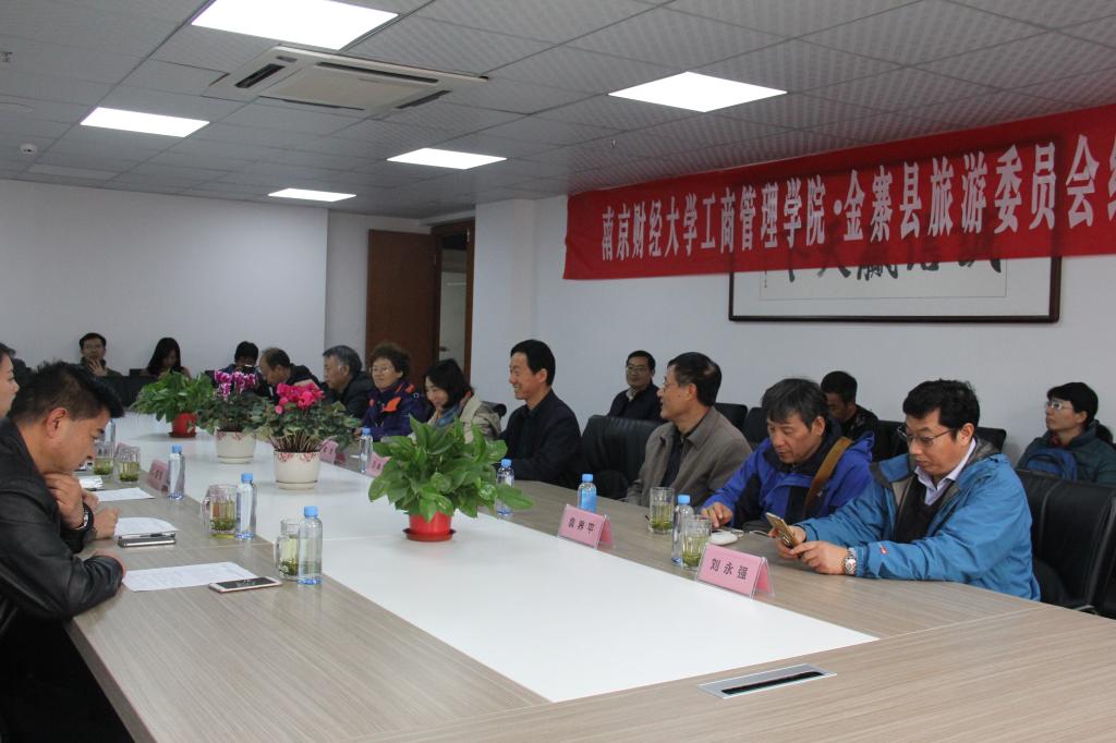 的基本情况及今后帮扶活动的计划,并与洪潮主任共同为共建单位揭牌,蒋琰副院长向对方赠送了旅游方面的书籍,侯立军教授对金寨县乡村振兴发展提出了宝贵意见。