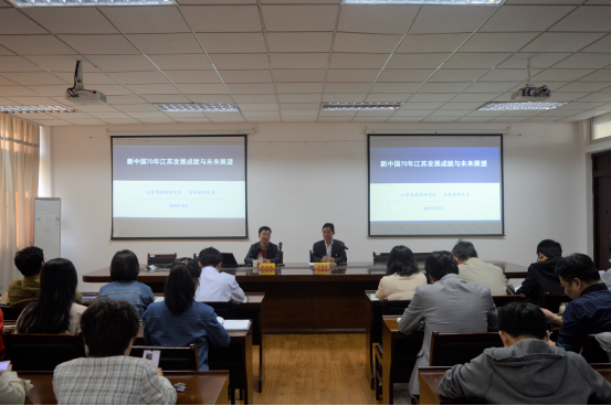 最后,江苏省政府研究室社会处处长、研究员金世斌同志作题为《新中国70年江苏发展成就与未来展望》讲座。金世斌处长从发展历程、辉煌成就、主要经验及未来展望四个方面带领大家学习了新中国成立70年来江苏的发展过程。