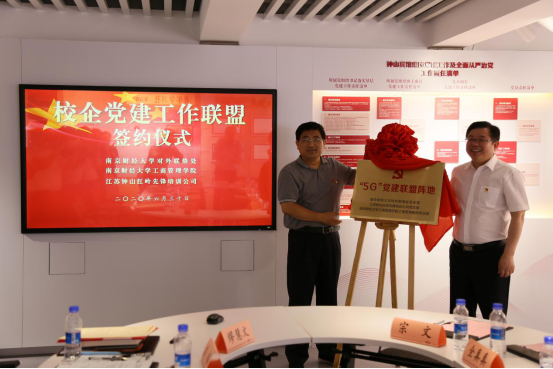 常委、副校长乔均与钟山宾馆集团党委书记、董事长朱银生共同为党建工作联盟揭牌。