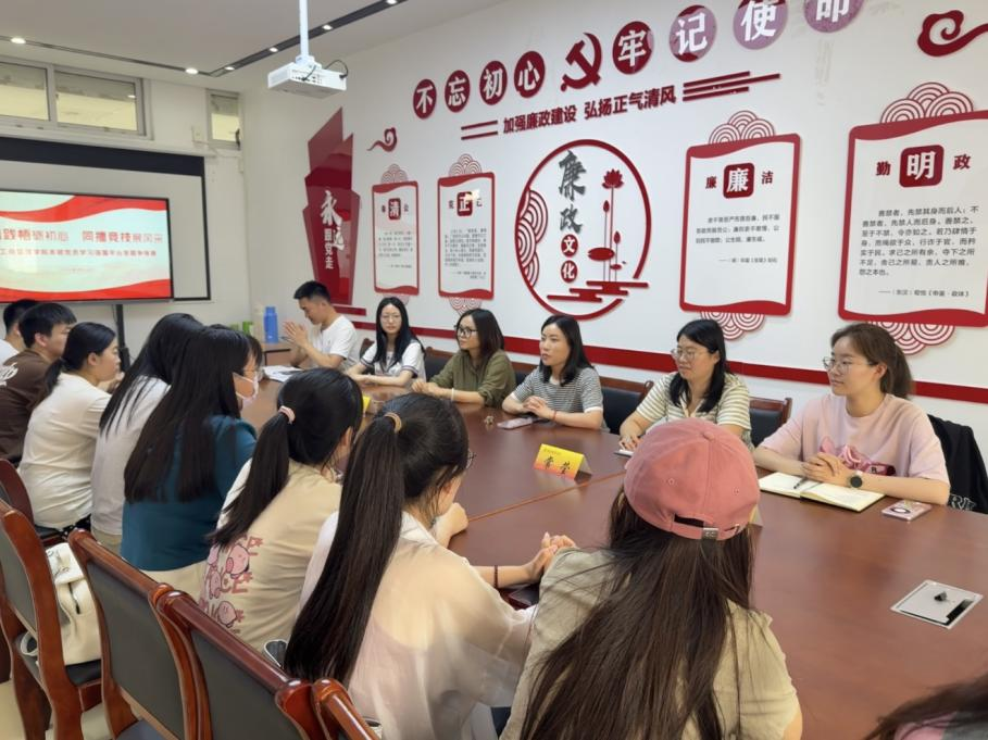 副书记尹海燕、组织员赵菲,全体学生党支部书记参加本次活动,活动由纽扣青年党支部书记朱静坤主持。