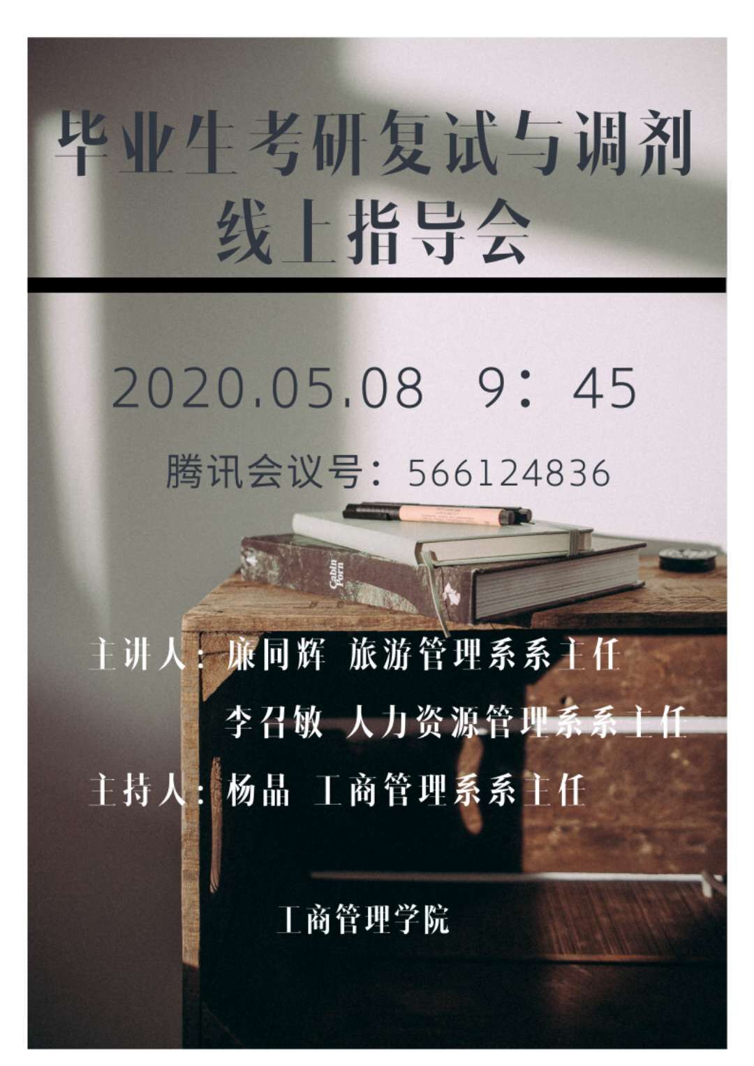 院工商管理系主任杨晶、人力资源管理系主任李召敏以及旅游管理系主任廉同辉作主讲嘉宾,分别为同学们讲解在研究生复试与调剂中应该注意的问题,同时开展了模拟复试,2020届部分考研学子参加讲座。