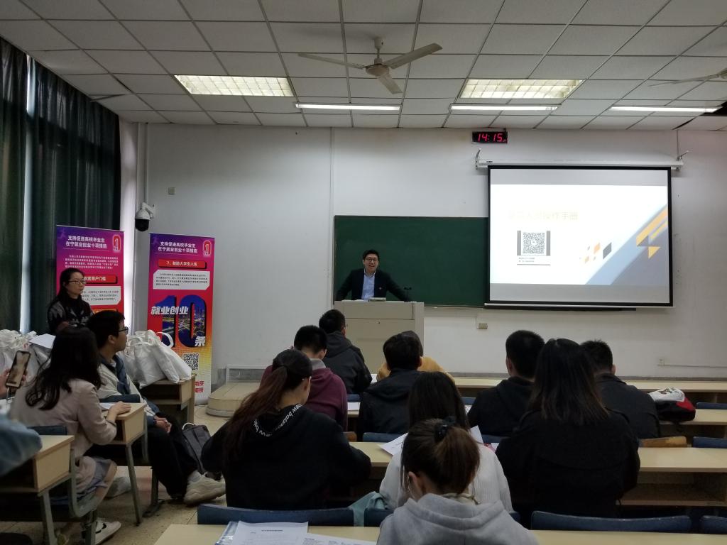 首先,雨花台区人力资源和社会保障局沈宇副局长紧扣大学生就业的相关问题,围绕南京市“宁聚计划—十万岗位邀‘宁’见习”政策,从什么是就业见习、为什么要参加就业见习、见习岗位、工资等方面进行了系统详实的讲解。接着,雨花人社局就业办张波主任详细介绍了就业见习的线上申请流程,并对同学们提出的相关问题进行了耐心细致的解答。最后,同学们就自己所关心的专业对口、薪酬待遇、发展平台等问题与参会的企业负责人进行了面对面交流。