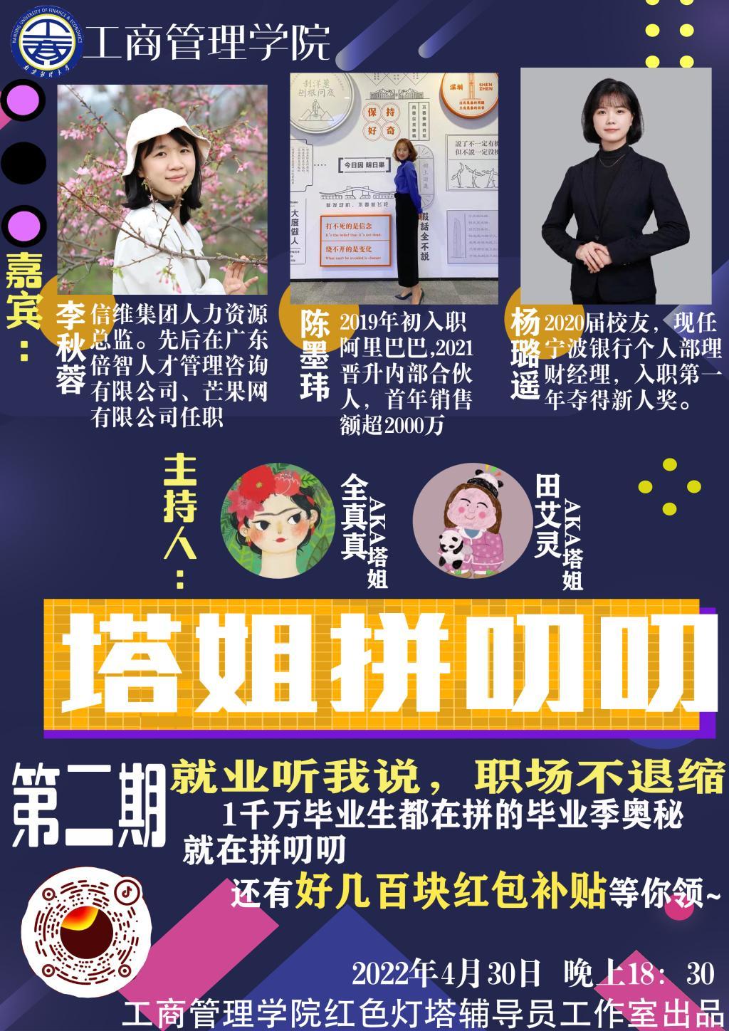 院红色灯塔辅导员工作室在抖音开设了“塔姐拼叨叨”系列直播活动。近日,南财就业讲堂,以“就业听我说,职场不退缩”为主题的直播如约而至,直播邀请了信维集团人力资源总监、乐玩网络游戏