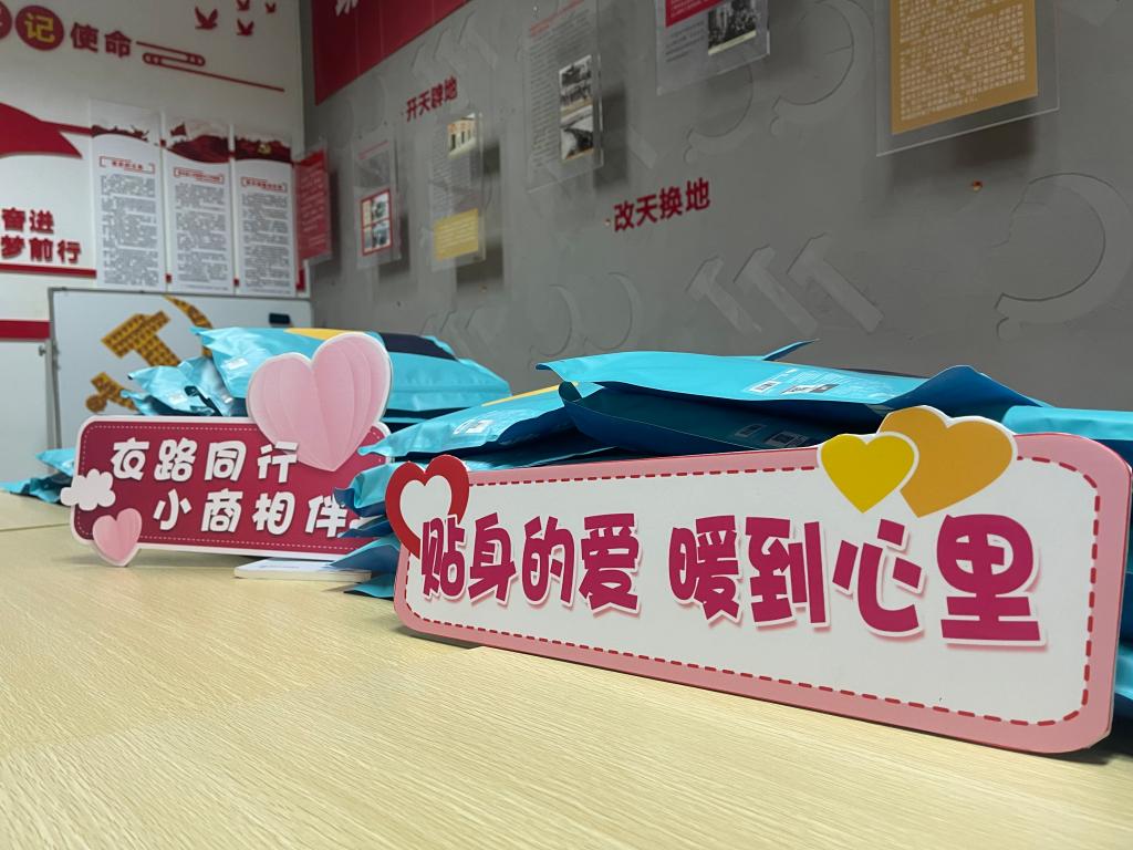 院在7号公寓党建联盟工作站“纽扣空间“开展了“衣路同行,小商相伴”冬日送温暖主题活动。院学工办主任邱祥霞、2022级辅导员常莹共同为家庭经济困难学生发放保暖内衣及羽绒服。