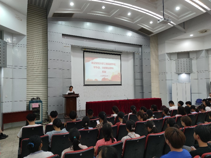 辩论队负责人依次上台进行招新宣讲。各部门负责人分别从部门简介、负责人介绍、工作规划、团建活动等几个方面展开宣讲,他们朝气蓬勃,自信大方、热情真诚的发言赢得了现场新生的热烈掌声。