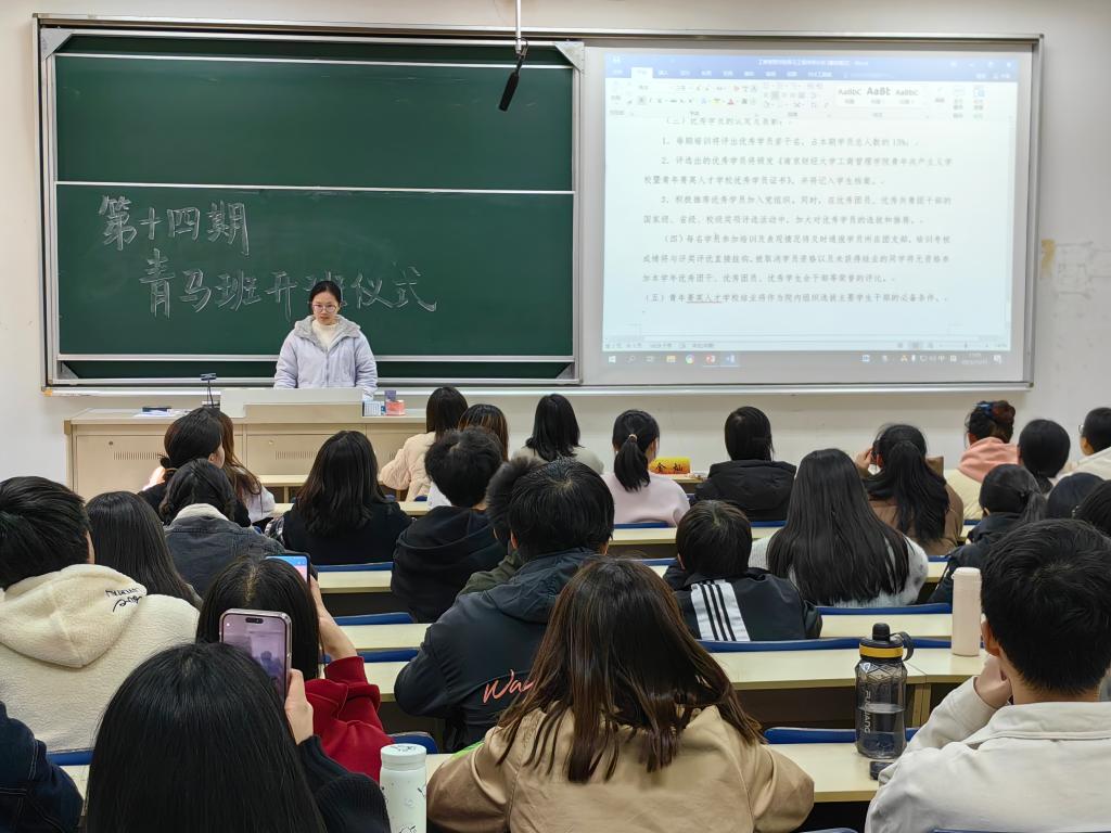 第十四期青马班培训周期为半年,将通过理论学习、志愿服务、社会实践、素质拓展等丰富多彩的学习内容,让同学们深入学习和思考马克思主义与社会主义核心价值观,帮助同学们更好地理解和把握党的基本路线、方针和政策,增强政治觉悟,提高政治站位,培养正确的政治信仰,为党培养和输送一批具备较高思想政治素质、政策理论水平、创新实践和组织协调等能力的优秀青年。