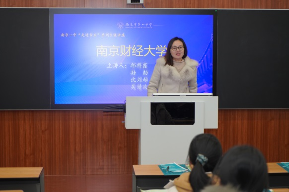 的文体活动、校园风景、校园周边、学在南财、食在南财、住在南财等情况;吴婧欢同学分享了自己进入大学以来取得的进步和收获,鼓励学弟学妹们坚持梦想,努力学习,度过充实而有意义的高中三年。互动环节,学生们踊跃提问,现场气氛热烈。