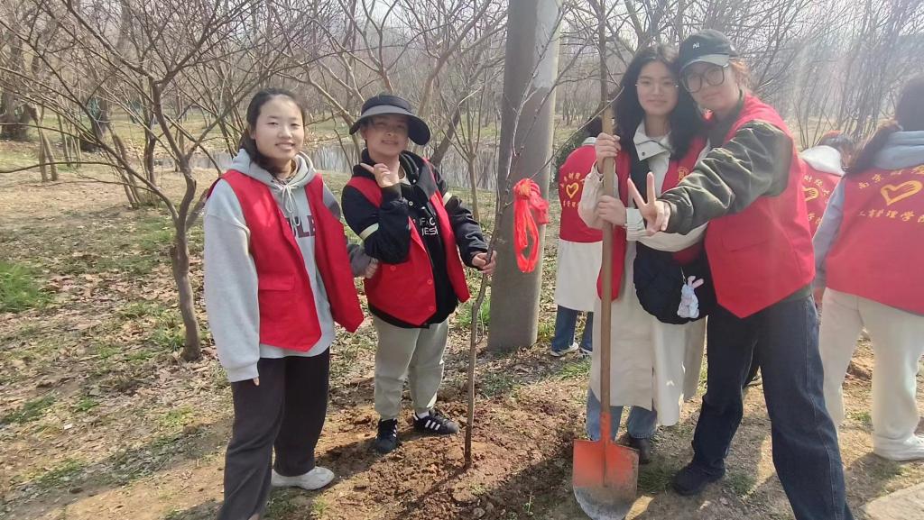 院于3月12日开展“绿意盎然,植得期待”植树节志愿主题活动,呼吁同学们积极参加绿色环保活动,传播绿色发展理念。