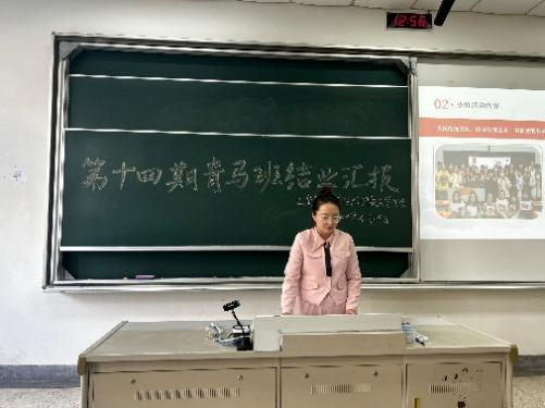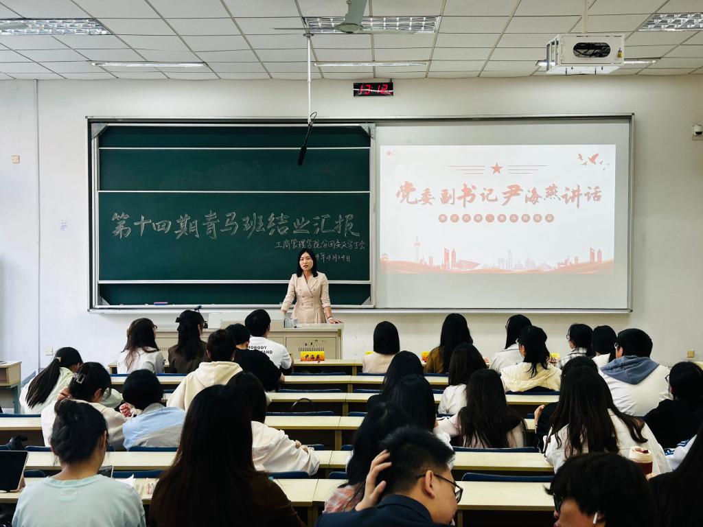 副书记尹海燕老师进行总结发言。她对本期青马班学员在结业汇报中展现出的优秀综合素质给予肯定,对各小组全面展现成员的个人学业发展、志愿服务实践、学科竞赛参与提出表扬。此外,尹海燕老师也对大家提出两点期望:第一,希望各小组在参与青马班活动之余积极主动组织马克思主义思想理论学习和实践活动,将理论学习贯彻到个人的学习生活中;第二,希望学员们做好马克思主义的传承者和传播者,努力投身学业和各项高质量学科竞赛,将在青马班的所学所知应用到实践中,将个人发展和乐玩网络游戏