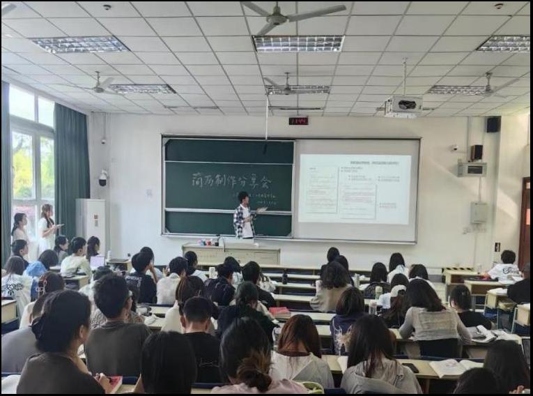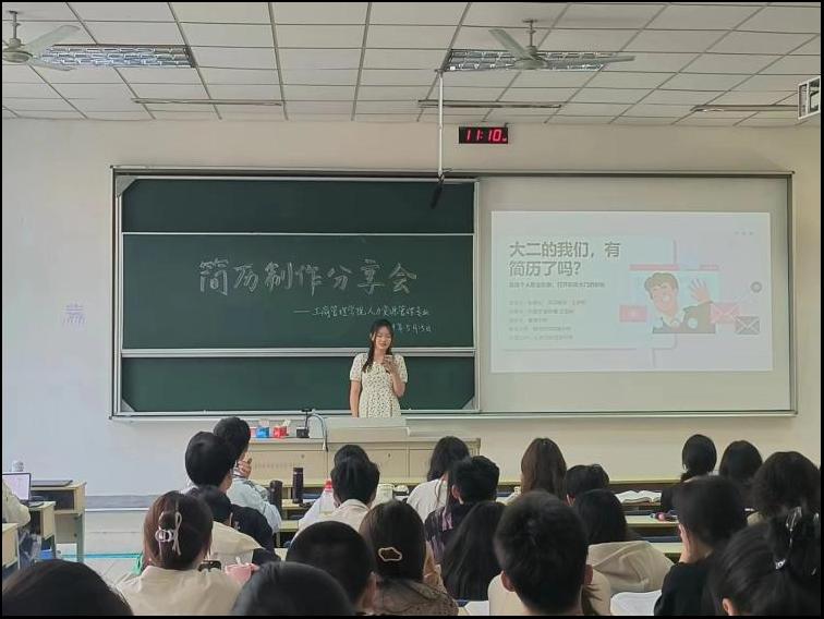 院在德济楼114教室举办了一场别开生面的“大二的我们,有简历了吗?”简历制作分享活动。专业教师曹倩、辅导员邱祥霞以及人力资源管理专业2022级全体同学参加了此次活动。本次活动由人资2202班班长陈嘉怡主持。