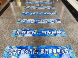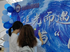 院国家奖学金获得者风采展示墙,在学长学姐们闪闪发光的事迹指引下,新生们沿着贴有和“光”有关的励志短语及管理学名人名言的星光大道前往报到地点,不少新生在此拍照打卡。