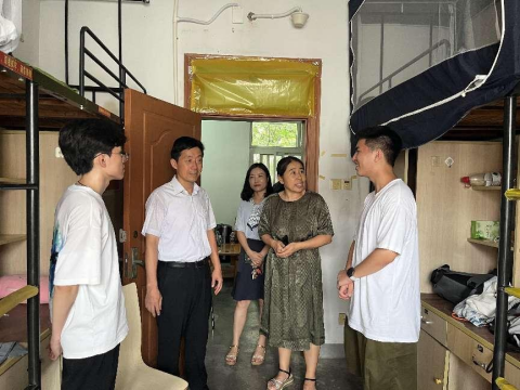 书记张杰、院长万绪才一行走访学生宿舍,与新生及家长热切交谈。