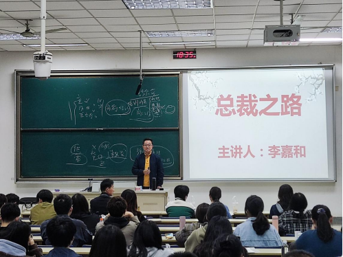企业管理92级校友、布衣宰相猎头品牌创始人李嘉和,于德济楼101教室为同学们作主题为“总裁之路”的分享会。此次分享会由乐玩网络游戏