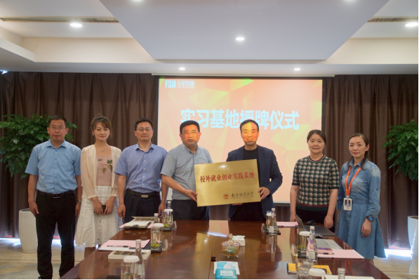 院校外就业实习基地”,汪建国董事长代表公司接牌。