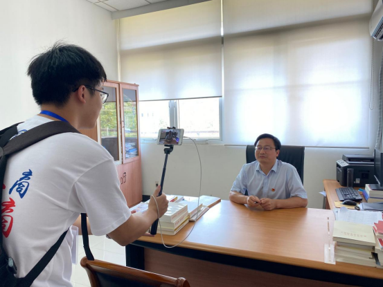 党委书记杨林在直播间问候新同学