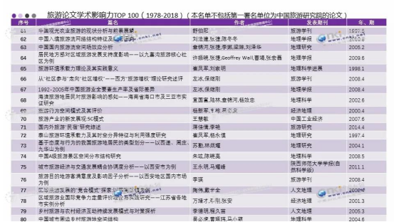 《区域旅游业国际竞争力定量评价理论与实践研究——江苏省各地实施例分析》名列“旅游论文学术影响力Top 100”第78名(图片来源:中国旅游研究院)