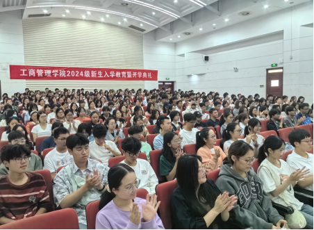 的优势学科、优势专业等情况。万院长引经据典从提升认知水平和成就精彩人生两个方面,勉励新生要正确认知“大学”,正确认识“管理”,牢记“自谦、自信、务实、超越”的校训,要自信、务实、执着,要立大志、磨炼意志、培养良好品质,提高综合素质,努力成长为堪当时代重任的工商才俊。