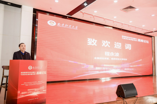 教育部高等院校旅游管理类教指委副主任、教育部旅游管理专业国家虚拟教研室主任、湖北大学马勇教授致辞。他肯定了南京财经大学旅游管理专业在学科建设、科研创新、人才培养、社会服务等方面取得了显著成绩并表示,本次高峰论坛为旅游学界和业界提供了交流学术思想、探讨前沿问题的平台,展现了南京财经大学在旅游学科建设与行业引领方面的责任担当与前瞻视野。通过深入交流与研讨,论坛将激发更多学术和实践创新思想,推动我国旅游管理学科专业建设迈上新台阶,并助力旅游业高质量发展。