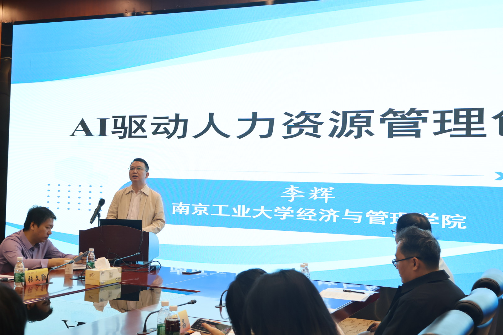 院副院长张文勤主持,南京工业大学李辉教授以“AI驱动人力资源管理创新”,聚焦AI驱动的人力资源管理范式变革,并指出未来数智化人力资源管理需在技术赋能与人文关怀之间寻求新的平衡;第四场专题报告由江苏省企业高质量发展研究院院长殷华方主持,扬州大学秦兴方教授以“AI赋能2026国社科基金高质量选题与论证”为题,围绕AI技术在科研项目申报、学术研究等多领域的应用展开探讨,系统阐释人工智能如何革新科研范式,为社科基金的高质量选题与精准论证提供关键方法论支持。