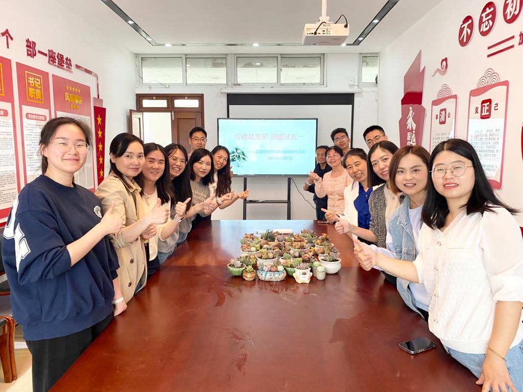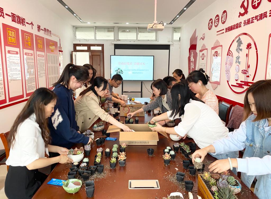 为营造崇尚劳动、崇廉尚俭、聚力发展的节日氛围,4月29日中午,乐玩网络游戏 院在德济楼403党建工作室开展“劳动最光荣,清廉过五一”多肉盆栽DIY活动。乐玩网络游戏 乐玩网络游戏 书记张杰、副书记尹海燕、副院长刘泽华及部分教职工代表参加活动。