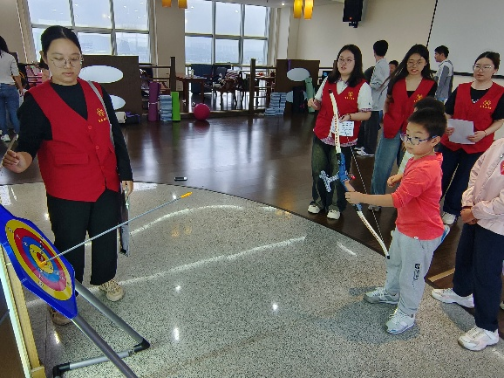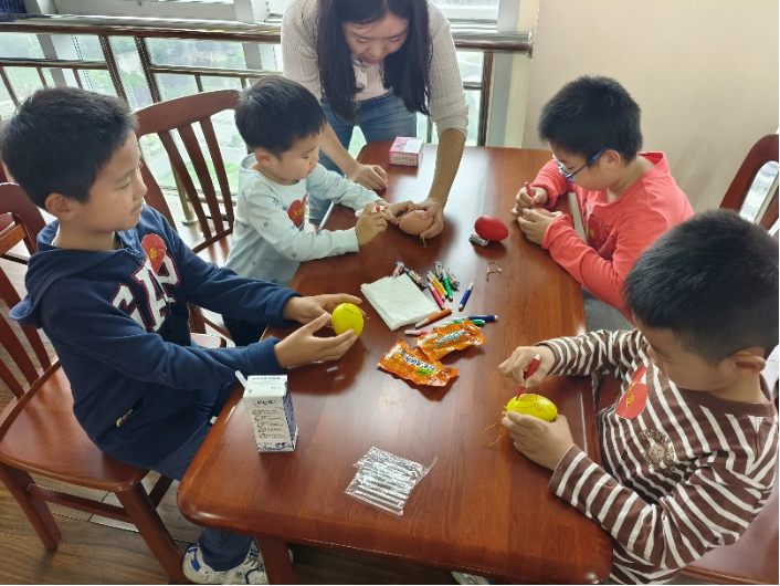 精心策划了丰富多样、安全有趣的互动游戏,紧张刺激的“击箭”与“飞镖”项目中,孩子们在专业指导下,化身“小小神射手”,为争夺高分荣誉认真比拼;考验默契的“双人推球”环节,家长与孩子背靠背或面对面协作运送瑜伽球,齐心协力冲向终点;趣味十足的“零食套圈”区,孩子们瞄准心仪的零食抛出套圈,收获满满惊喜。最富节日特色的“端午鸭蛋绘画”活动,则让孩子们充分发挥想象,用水彩笔和颜料在鸭蛋上描绘出五彩斑斓的端午图景或个性创意,活动还为游戏优胜者及参与者准备了精美礼品,现场气氛温馨热烈。