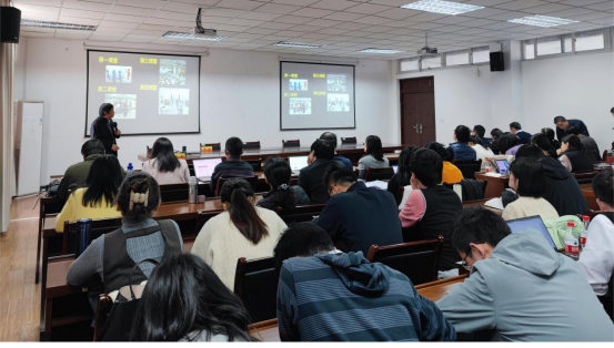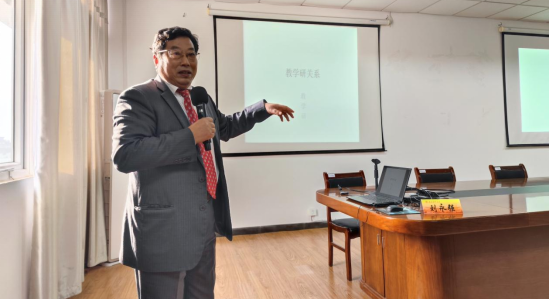 交流会上,刘永强老师介绍了他多年的教学经历,重点分享了双语教学和案例教学等方面的课程建设和教学经验。