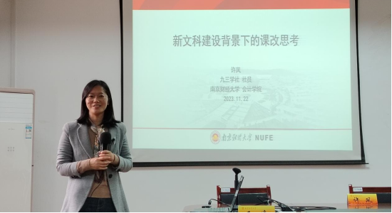 许凤老师以《中级财务会计》课程为例,从教学内容、教学方法、教学评价等方面介绍了课程创新的思路和举措,重点分享了在课程思政和数智赋能课程建设等方面的创新实践。三位老师的报告博得在场社员和教师的一致好评。
