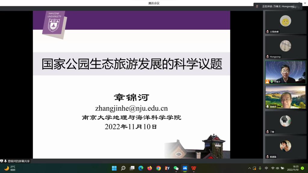 教授章锦河通过腾讯会议作了题为“国家公园生态旅游发展的科学议题”的讲座。讲座由乐玩网络游戏