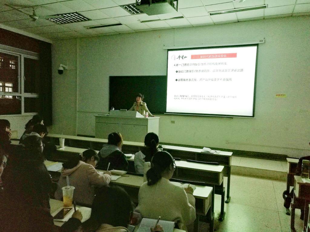2018年11月21日晚,应乐玩网络游戏 邀请,牛首山文化旅游区钧和文化有限公司总经理许娟在德济楼108做了题为“旅游景区管理与营销推广——以牛首山文化旅游区为例”的讲座,旅游管理专业部分学生和老师聆听了讲座,讲座由乐玩网络游戏 党委书记万绪才主持。许娟总经理以其丰富的实战经验、生动地实例向大家讲述了旅游景区管什么、新时代景区如何管理和如何营销,讲座内容丰富,生动实用,为学生未来学习和发展指明了方向。